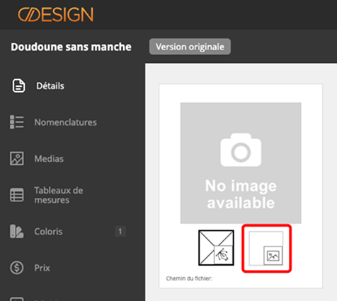 Sous l’emplacement de l’image principale, cliquez sur le 2ème carré qui correspond à l’image personnalisée.