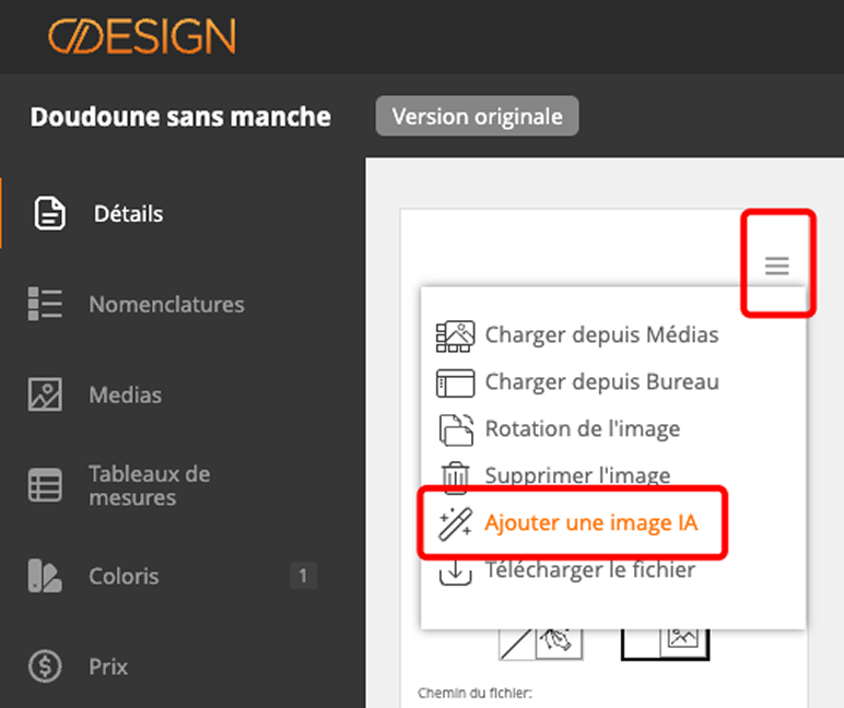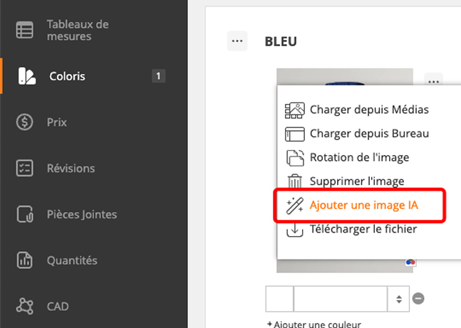 Ouvrez le menu et cliquez sur Ajouter une image IA.