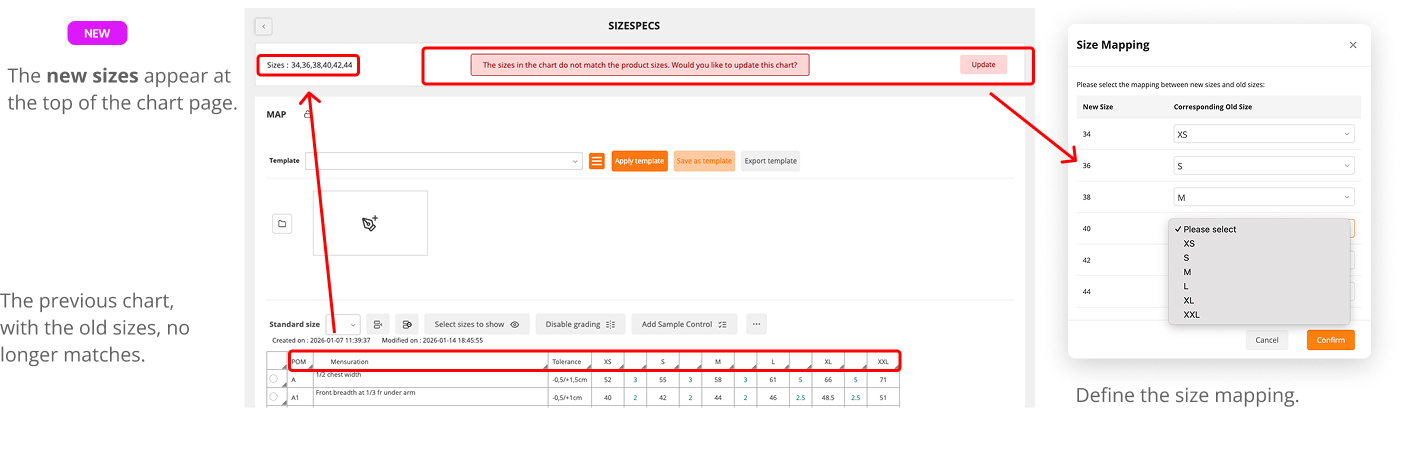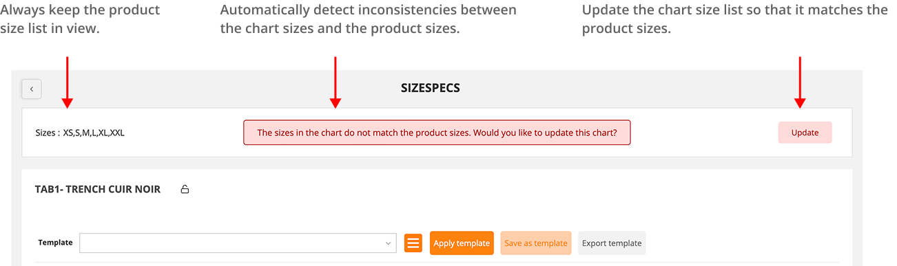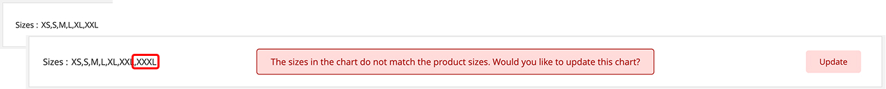 - Automatically detect inconsistencies between the chart sizes and the product sizes.