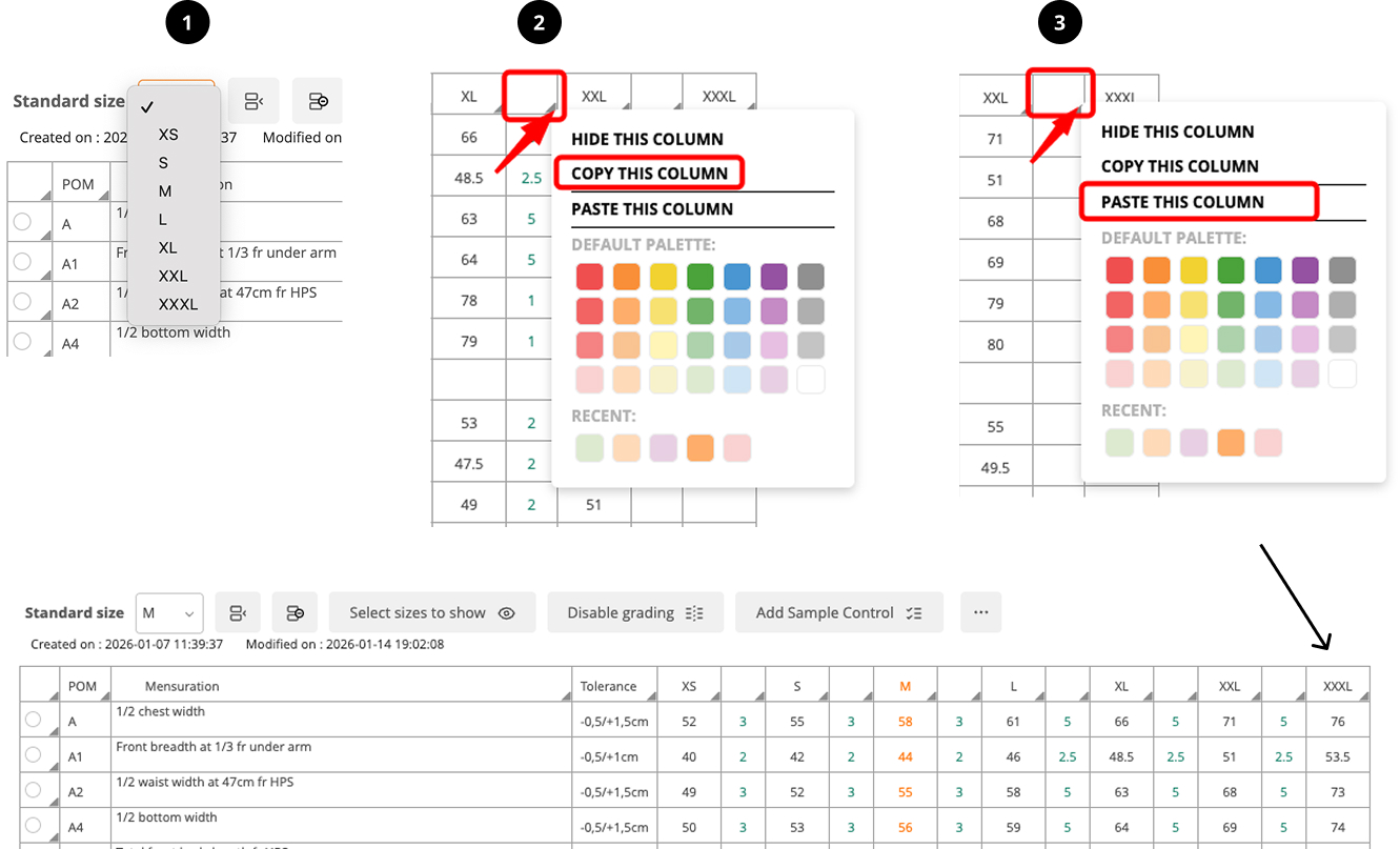 Inconsistencies between the chart sizes and the product sizes are immediately detected, and you are notified by an alert message.