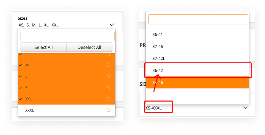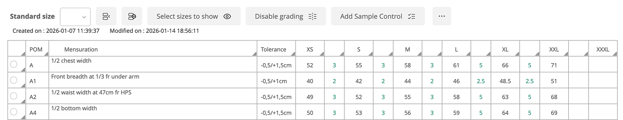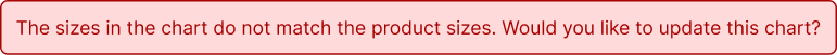 Whether you update the size list from the product details page, import a chart from another product, or use a template, the chart sizes may no longer exactly match the product sizes.